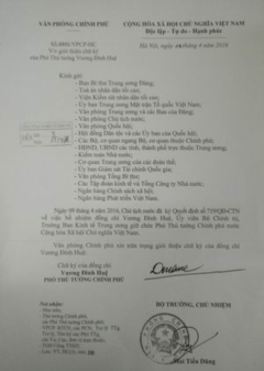 Giới thiệu chữ ký của Phó Thủ tướng Chính phủ Vương Đình Huệ