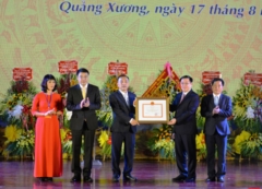 (Chinhphu.vn) - Chiều 17/8, UBND tỉnh Thanh Hóa đã công bố quyết định và đón Bằng công nhận huyện Quảng Xương đạt chuẩn nông thôn mới năm 2018. Ủy viên Bộ Chính trị, Phó Thủ tướng Chính phủ Vương Đình Huệ dự lễ trao bằng.