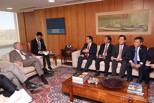 Trong cuộc hội kiến, Tổng thống Michel Temer bày tỏ Brazil coi trọng vị thế của Việt Nam tại khu vực Đông Nam Á và mong muốn Việt Nam làm cầu nối để Brazil thúc đẩy hợp tác với cộng đồng ASEAN.