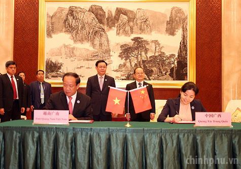 Ngày 11/9, Phó Thủ tướng chứng kiến lễ ký biên bản ghi nhớ thiết lập quan hệ hợp tác hữu nghị giữa tỉnh Quảng Nam (Việt Nam) và Khu tự trị dân tộc Choang Quảng Tây-Trung Quốc