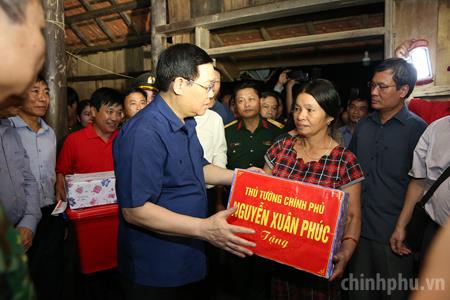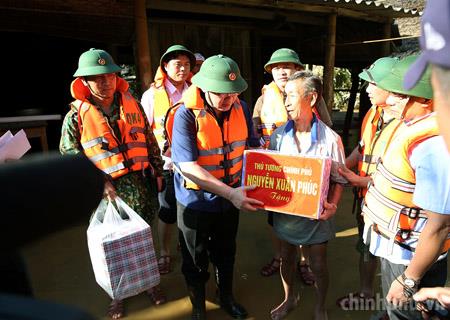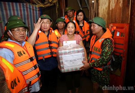 Phó Thủ tướng Vương Đình Huệ gửi lời hỏi thăm và quà của Thủ tướng Nguyễn Xuân Phúc tới bà con vùng lũ.