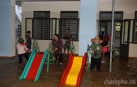 Nhiều trường học trên địa bàn Hà Tĩnh chưa thể khai giảng do nước ngập sâu.