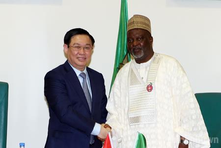 Phó Thủ tướng Vương Đình Huệ và Phó Chủ tịch Hạ viện Nigeria Hon Ahmed Wase.