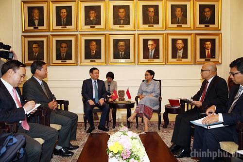 Chiều 19/7, Phó Thủ tướng bắt đầu chuyến thăm làm việc tại Indonesia. Trong ảnh: Phó Thủ tướng Vương Đình Huệ làm việc với Bộ trưởng Ngoại giao Retno Marsudi.