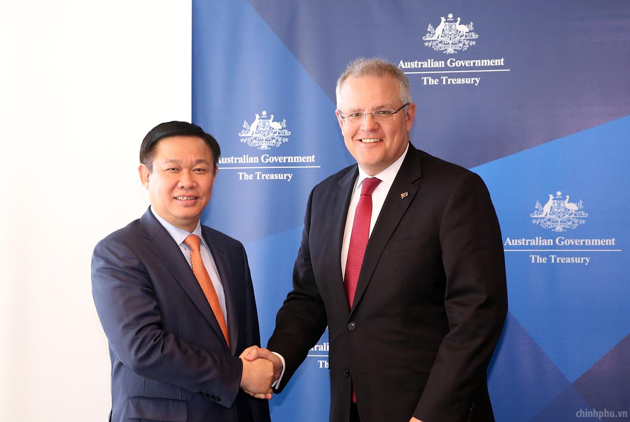 Trong khuôn khổ chuyến thăm Australia, ngày 24/7, Phó Thủ tướng Vương Đình Huệ đã có cuộc làm việc với Bộ trưởng Ngân khố Scott Morrison.