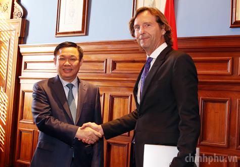 Phó Thủ tướng Vương Đình Huệ và Bộ trưởng Tài chính New Zealand Steven Joyce.