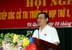 (Chinhphu.vn)- Chiều 28/9, Phó Thủ tướng Vương Đình Huệ cùng các đại biểu Quốc hội tỉnh Hà Tĩnh tiếp xúc cử tri huyện Vũ Quang để ghi nhận ý kiến gửi tới kỳ họp thứ 8 Quốc hội khóa XIV dự kiến diễn ra vào nửa cuối tháng 10 tới.